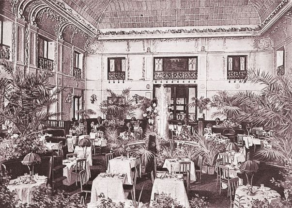 «Метрополь» — ресторан, основанный в 1899—1905 годах русским предпринимателем и меценатом Саввой Ивановичем Мамонтовым. Мамонтов хотел создать культурно-досуговый центр, который соединил бы в себе вернисажи, залы для маскарадов и танцевальных вечеров, зимний сад и даже оперный театр, однако в итоге получились только гостиница и ресторан. Несмотря на это, «Метрополь» признан одним из самых значительных историко-архитектурных памятников модерна и включен в список федеральных памятников архитектуры. Над созданием гостиничного комплекса работала целая плеяда известных и талантливых архитекторов и художников. Помимо Вильяма Валькота, Льва Кекушева и Николая Шевякова, в разработке интерьеров участвовали архитекторы В.Шухов, П. П. Висневский, С. С. Шуцман, В. В. Воейков, С. П. Галензовский, В. И. Рубанов, М. М. Перетяткович, И. А. Герман, П. Вульский, А. Эрихсон, В. Веснин, И. Жолтовский. Внешний облик «Метрополя» стал в своё время настоящим манифестом московского модерна. Современники назвали гостиницу «Вавилонской башней XX века» из-за главного украшения фасада — панно А. Головина «Времена года», «Жажда», «Поклонение божеству», «Поклонение природе» и майоликовому панно М.А. Врубеля «Принцесса Греза». «Метрополь» был одним из самых престижных и дорогих ресторанов имперской Москвы. Его посетителями были не только цвет интеллигенции и деятели культуры вроде В. Брюсова, А. Блока, К. Бальмонта, А. Белого, М. Кузьмина, О. Мандельштама, Ф. Шаляпина, И. Северянина, но и настоящие миллионеры, например, Николай Рябушинский.